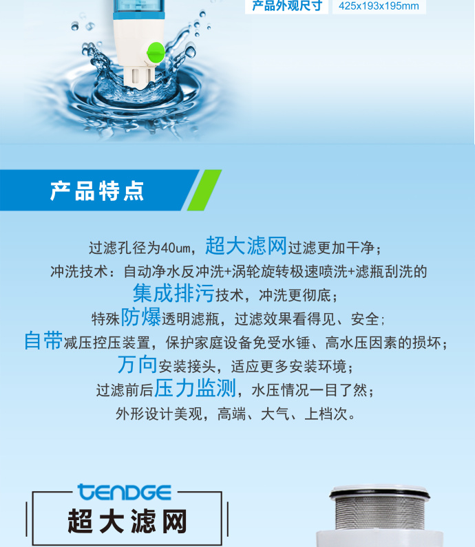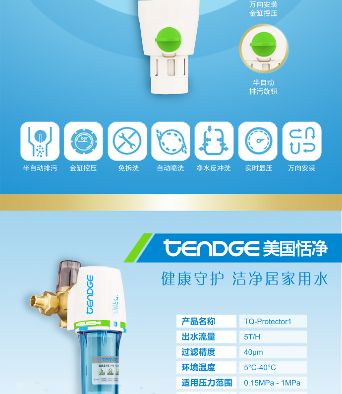 適用壓力:0.15-1MPa 過濾精度:40μm