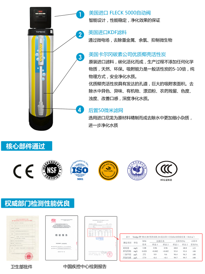 全屋中央凈水機(jī)有效去除水中的異色、異味;進(jìn)一步濾除水中微小雜質(zhì)、膠狀體;去除水中的漂白粉余氯、農(nóng)藥、重金屬;保留對人體有益的礦物質(zhì)。使水變得碧清、碧藍(lán),去除對人體有害的物質(zhì)。