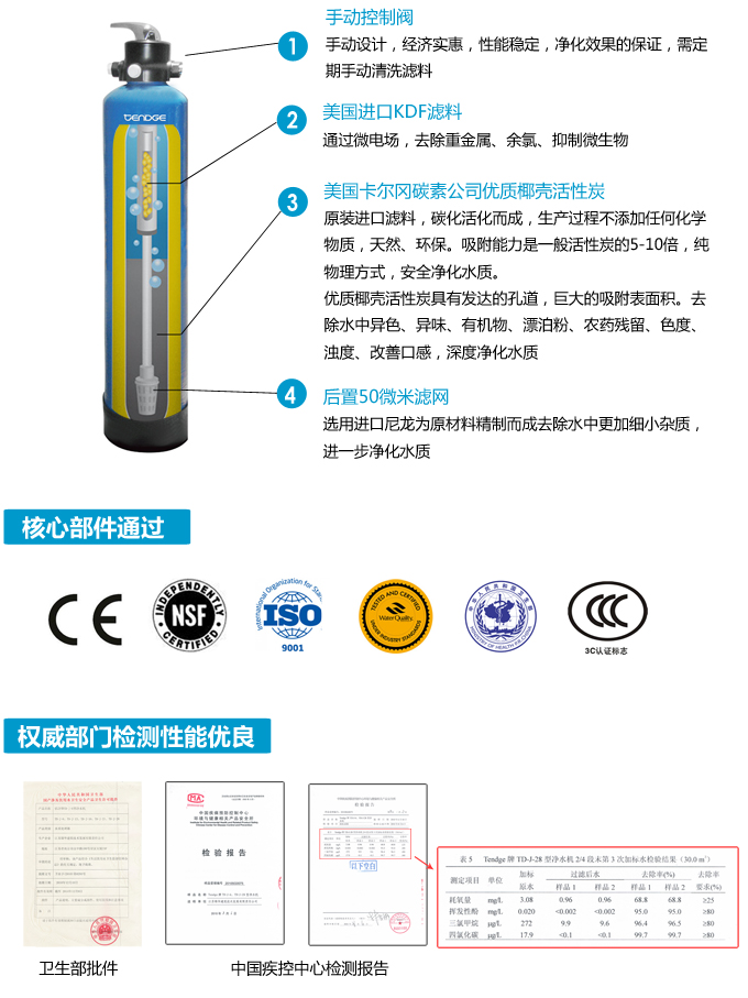 手動全屋中央凈水機(jī)有效去除水中的異色、異味;進(jìn)一步濾除水中微小雜質(zhì)、膠狀體;去除水中的漂白粉余氯、農(nóng)藥、重金屬;保留對人體有益的礦物質(zhì)。使水變得碧清、碧藍(lán),去除對人體有害的物質(zhì)。