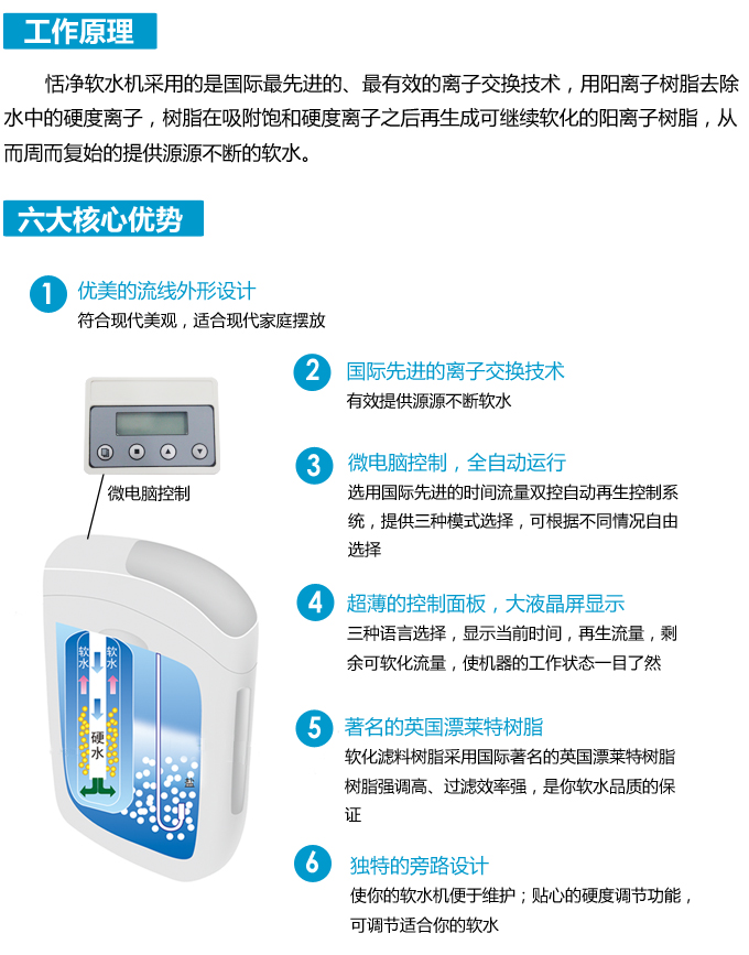 Tendge中央軟水機采用的軟水技術(shù)是目前最先進的、最有效的離子交換技術(shù),采用離子交換技術(shù)去除水中的硬度離子,防止水垢生成并提高用水的舒適度。